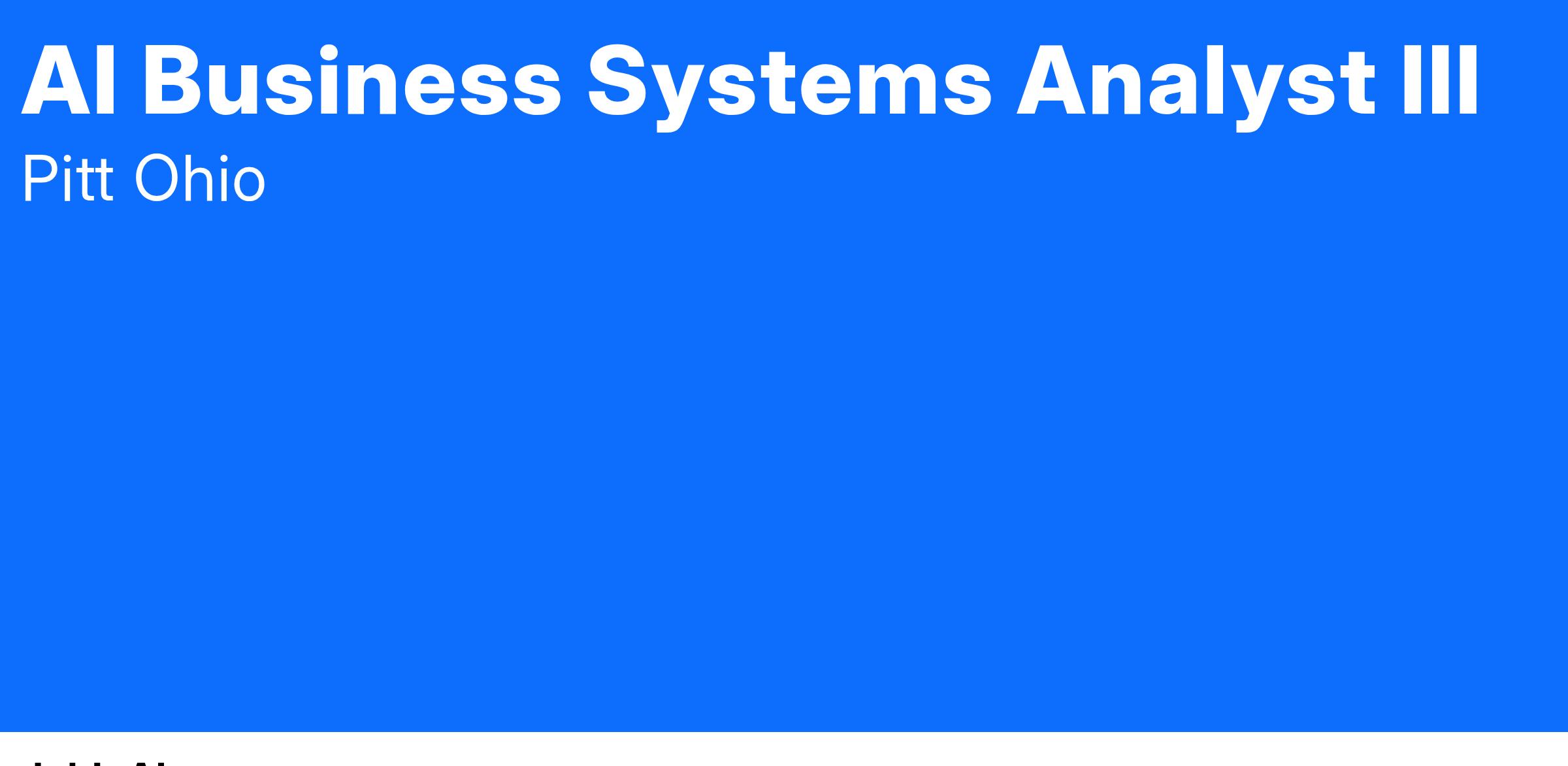 PITT OHIO, a $900 million, high service, highly profitable, transportation solutions provider offering SUPPLY CHAIN, LTL and TRUCKLOAD services is seeking a AI Business Systems Analyst III to join our team at our Corporate Headquarters in Pittsburgh, Pa.
