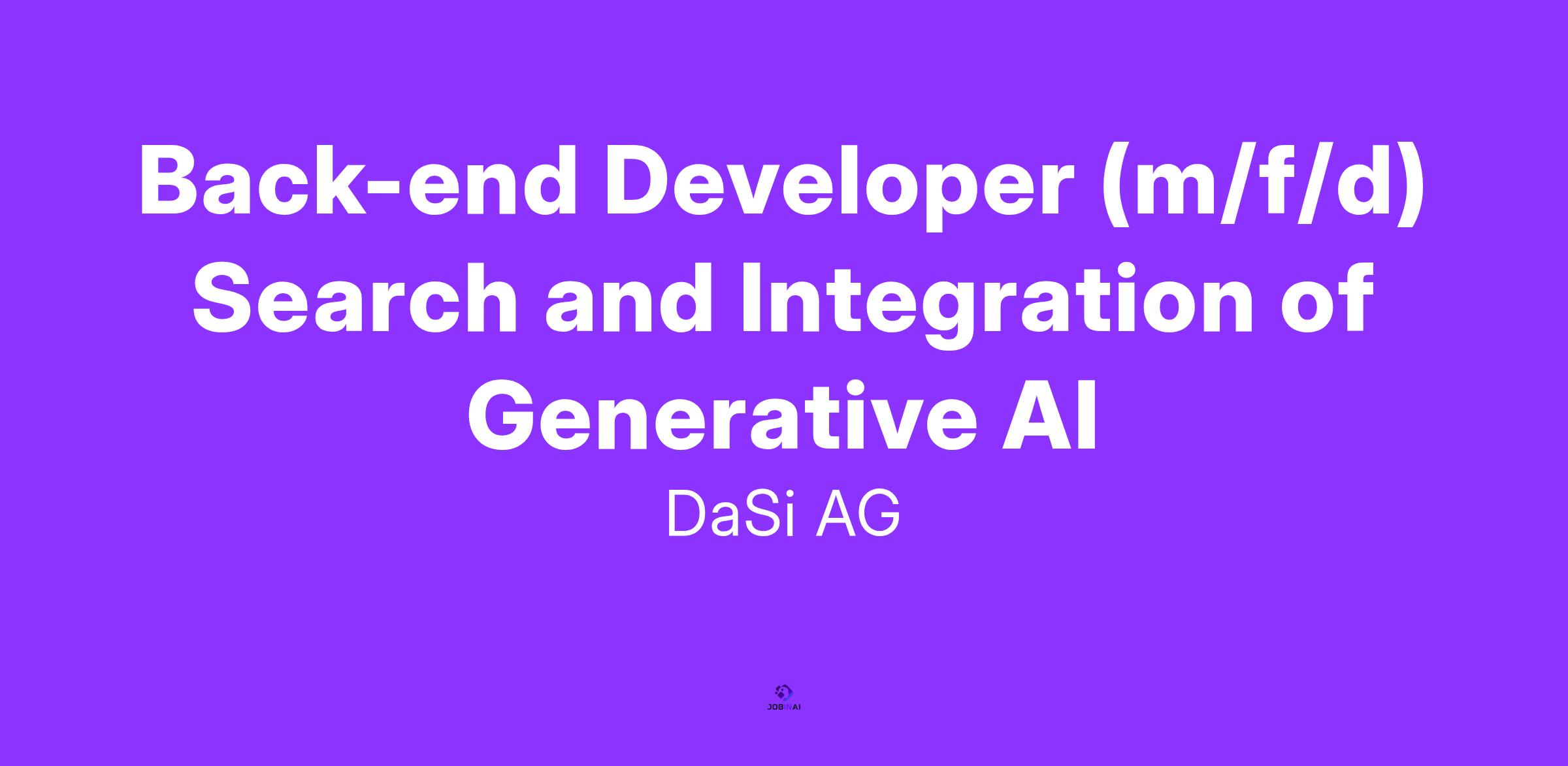 DaSi AG ist ein führender Anbieter von Computer-Software-Lösungen, der sich auf die Entwicklung von innovativen Produkten und Dienstleistungen spezialisiert hat. Wir suchen einen Back-end Entwickler (m/w/d) für die Suche und Integration von Generativer KI. Ihre Aufgaben: Sie sind für die Entwicklung und Implementierung von Back-end-Lösungen zur Suche und Integration von Generativer KI verantwortlich. Dazu gehören die Entwicklung von Datenbanken, die Entwicklung von APIs, die Entwicklung von Algorithmen und die Integration von Generativer KI in bestehende Systeme. Sie sind auch für die Wartung und Weiterentwicklung der bestehenden Systeme verantwortlich. Sie sind verantwortlich für die Dokumentation der entwickelten Lösungen und die Kommunikation mit anderen Teams.