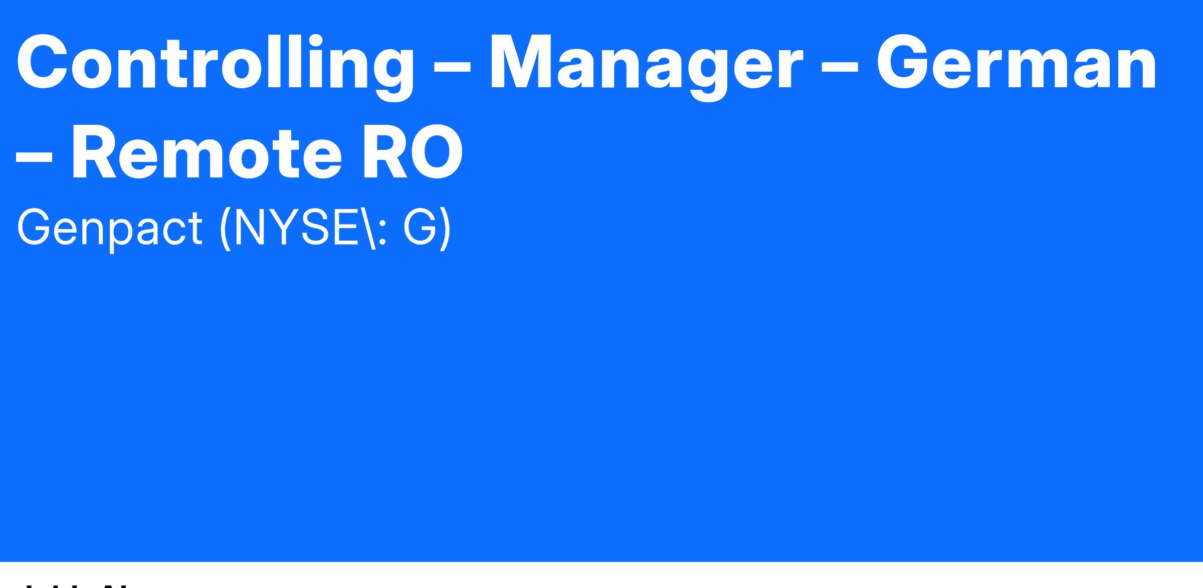 Inviting applications for the role of Controlling – Manager – German – Remote RO