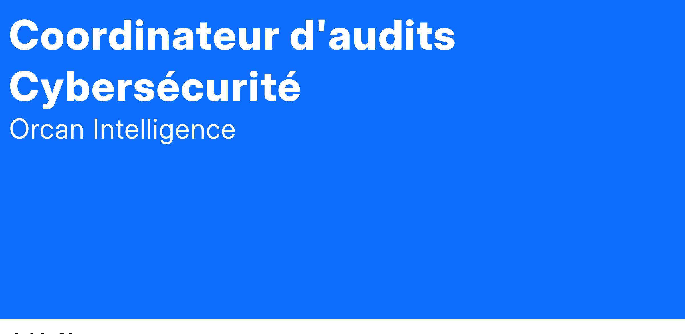 Orcan Intelligence recherche pour l’un de ses clients un coordinateur d’audits cybersécurité pour intervenir sur les sujets suivants :