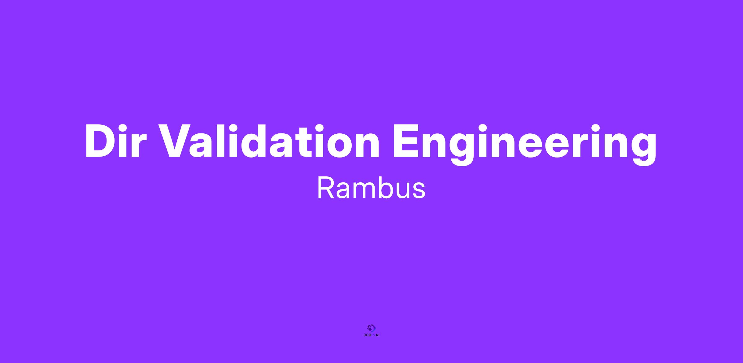 Rambus, a premier chip and silicon IP provider, is seeking to hire an exceptional Dir Validation Engineering to join our Memory Interface Chip business unit. Candidates will be joining some of the brightest inventors and engineers in the world to develop products that make data faster and safer.