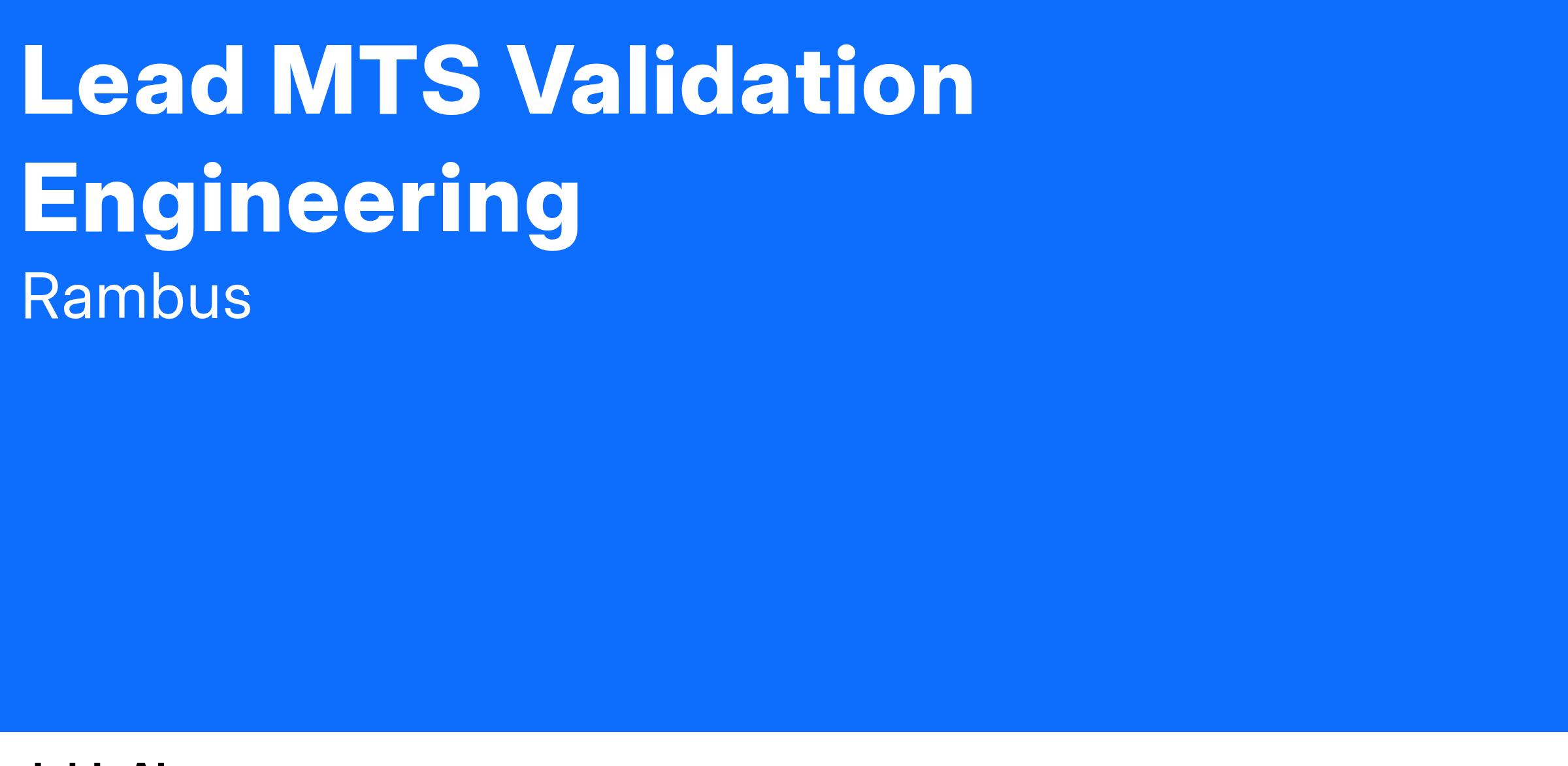 Rambus, a premier chip and silicon IP provider, is seeking to hire an exceptional Lead MTS Application and Validation Engineering to join our Memory Interface team in San Jose California. Candidates will be joining some of the brightest inventors and engineers in the world to develop products that make data faster and safer.
