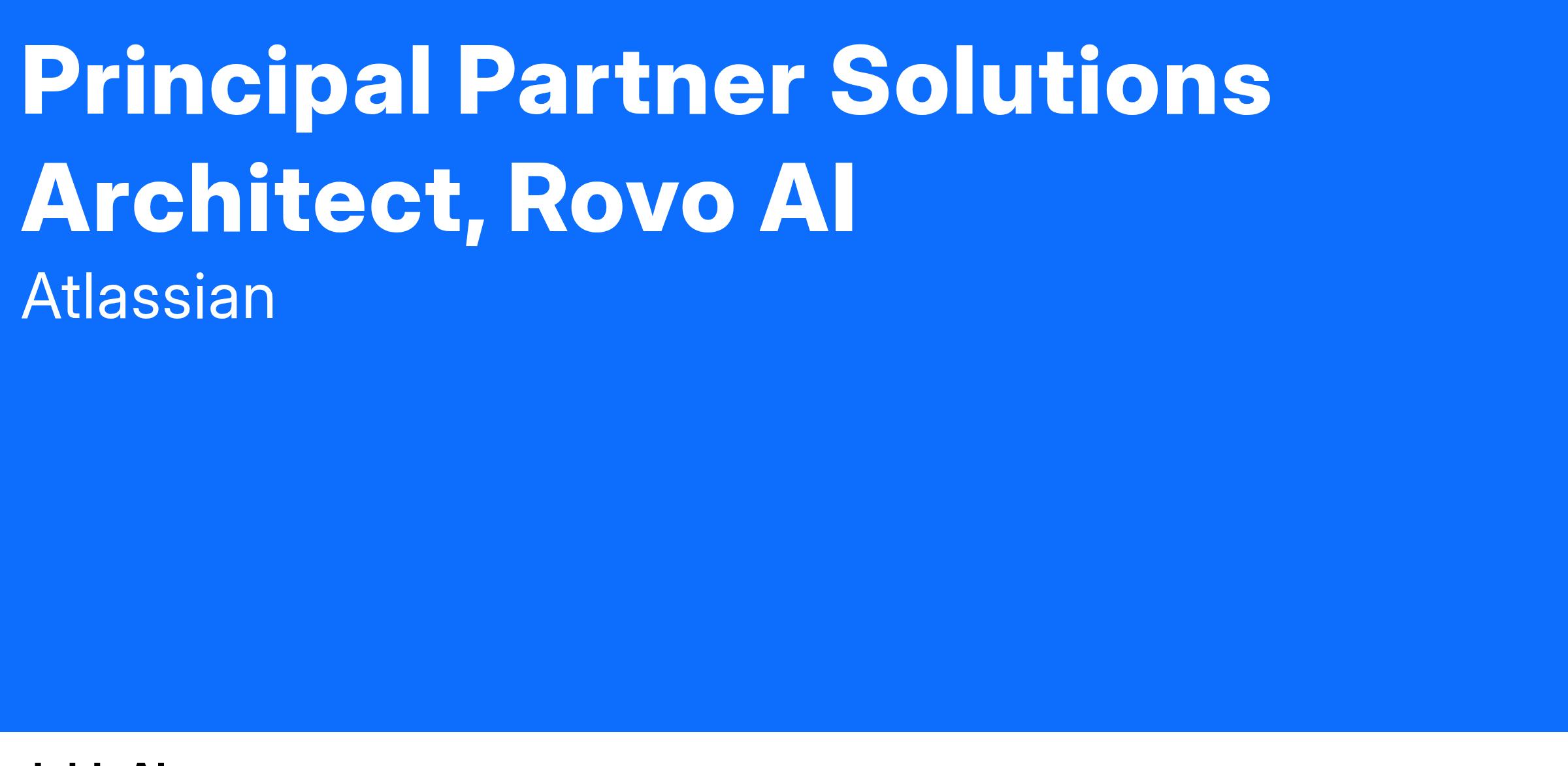 At Atlassian, we're building a global team that is shaping the future of collaboration through our Solution Partners and Regional/Global System Integrators (R/GSIs). We are seeking an experienced Principal Partner Solutions Architect to play a pivotal role in driving the strategy, capabilities, practice development, and channel growth for Rovo, our newly launched AI-powered product. This is an exciting opportunity to engage with our Channel teams and lead solution initiatives that will accelerate the success of our strategic partnerships, helping Atlassian's practice thrive in a fast-growing, collaborative environment.