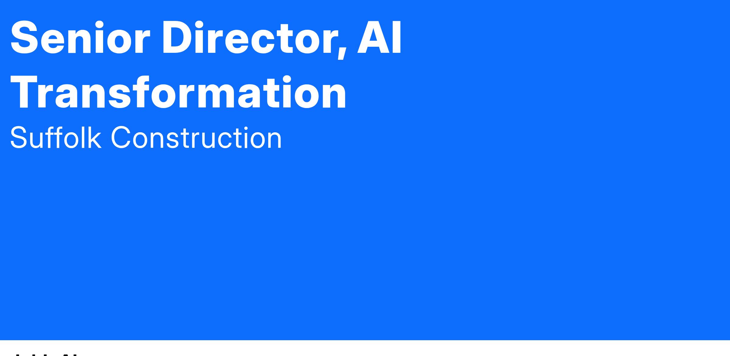 Suffolk, a vertically integrated general contractor and investment business in the US, is seeking an experienced transformation director to lead its Artificial Intelligence enablement for the organization. The ideal candidate should have strong business acumen, high levels of creativity and problem solving, and a track record of influencing leaders and driving enterprise change. They also need to be highly collaborative, as this role will involve close work with existing resources within the broader organization to drive progress, as well as being flexible to a dynamic and high paced work environment. Experience working in, or knowledge of, the A/E or construction environment is highly desirable, but not required.