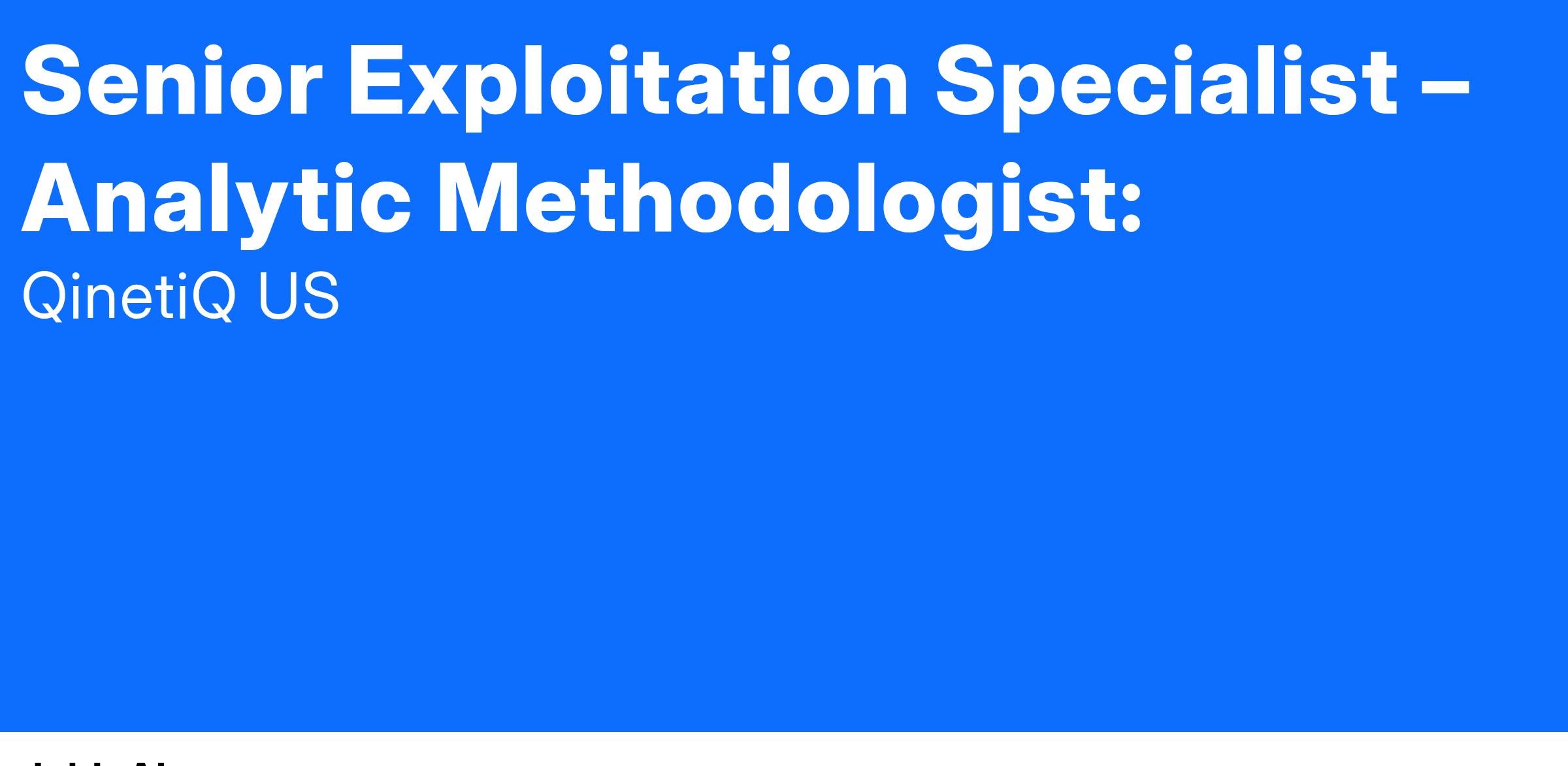 Far Ridgeline Engagements, a Qinetiq US company, is seeking a Senior Exploitation Specialist - Analytics Methodologist to support NGA by developing solutions that integrate technology, applied tradecraft techniques and processes, creating new products or paradigms that support advanced analytics and modeling, data management, application of modern software, artificial intelligence, and the future of work in this GEOINT space.