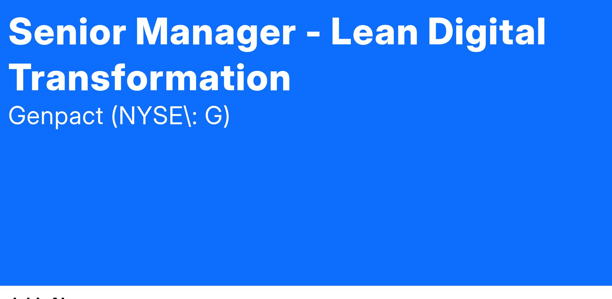 Inviting applications for the role of Manager / Senior Manager - Lean Digital Transformation.