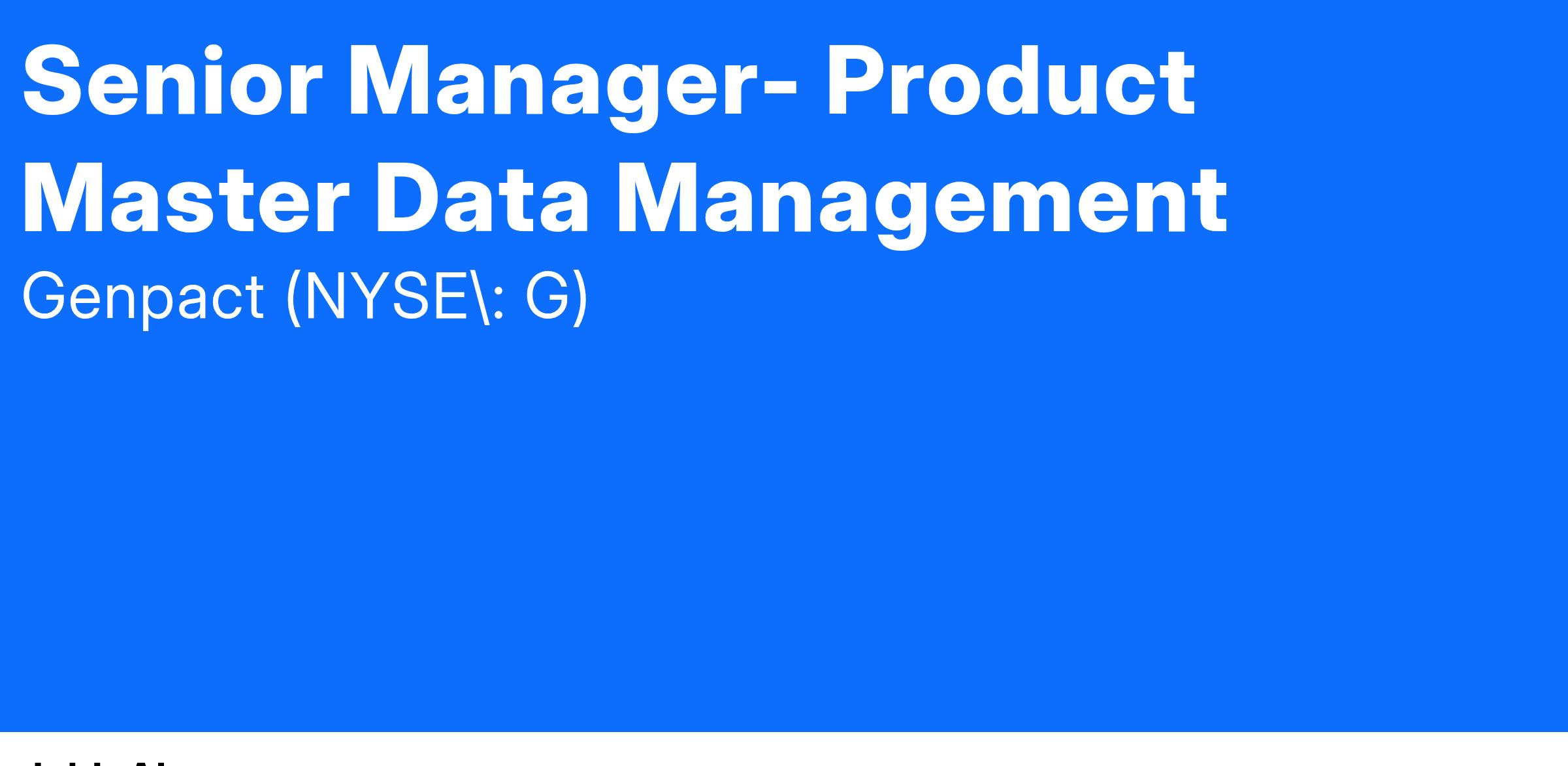Inviting applications for the role of Senior Manager- Product Master Data Management