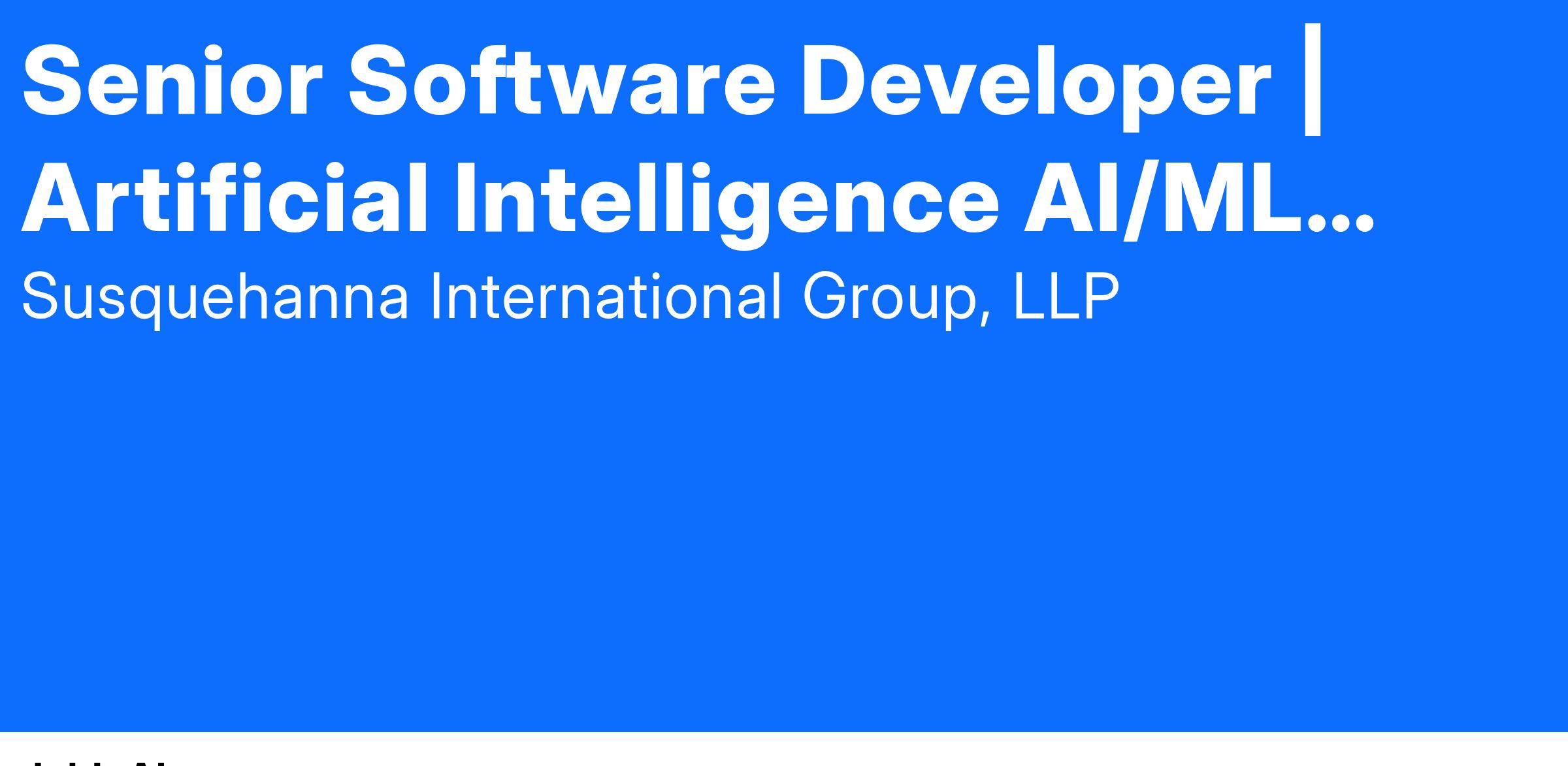 On our Corporate Systems AI team you’ll develop, customize, and integrate opportunities where AI can enhance operational efficiencies for in-house and third-party applications utilized across teams that span Human Resources, Payroll, Accounting, Tax, Legal, Marketing and Private Equity. You’ll have the opportunity to lead the integration of cutting-edge conversational AI technologies across our internal operations. Our end-users are our partners and by joining us, you’ll engage with them directly to enhance the functionality and usability of application suites that are instrumental to Susquehanna's success.