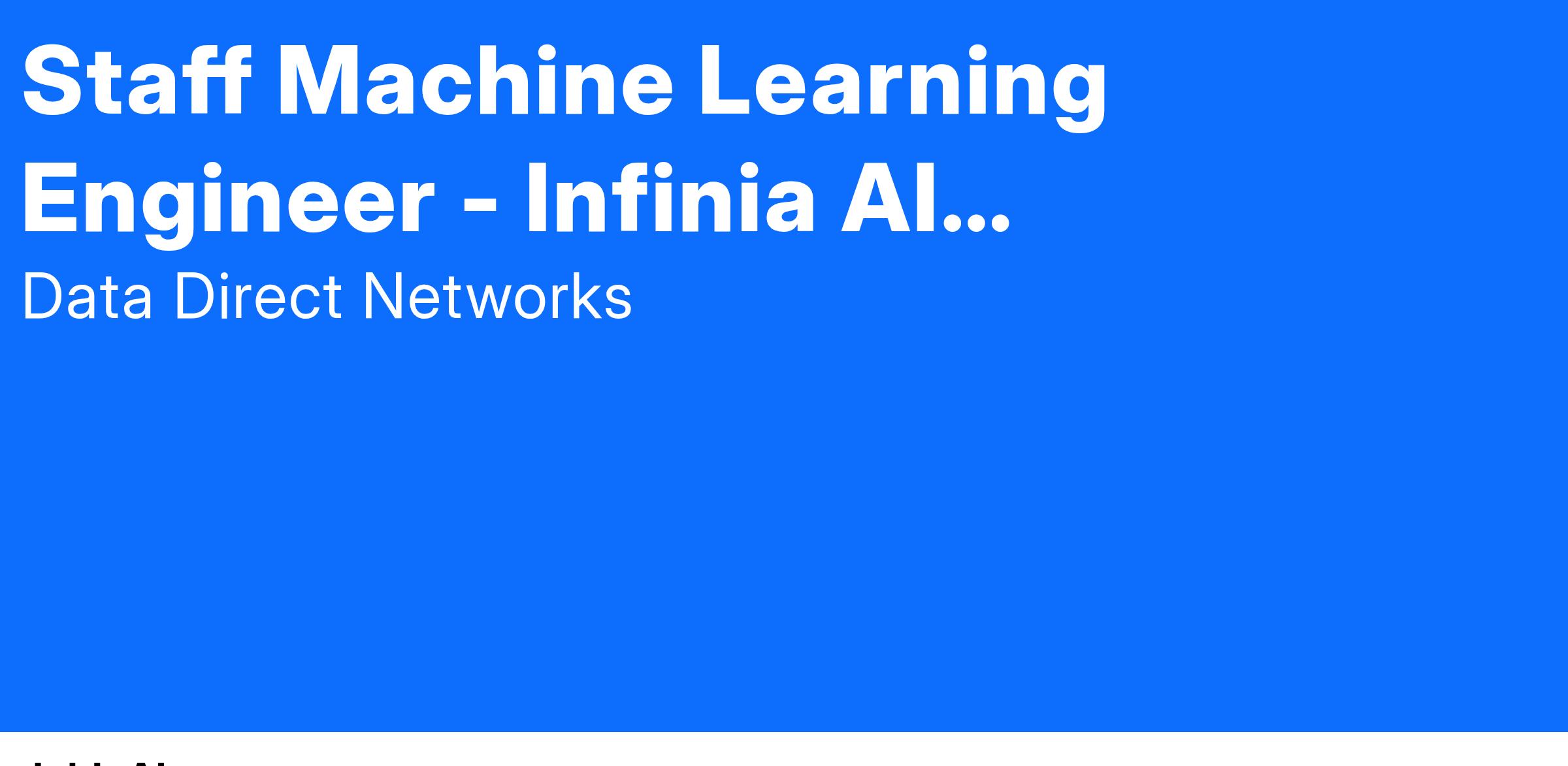 This is an incredible opportunity to be part of a company that has been at the forefront of AI and high-performance data storage innovation for over two decades. DataDirect Networks (DDN) is a global market leader renowned for powering many of the world's most demanding AI data centers, in industries ranging from life sciences and healthcare to financial services, autonomous cars, Government, academia, research and manufacturing.