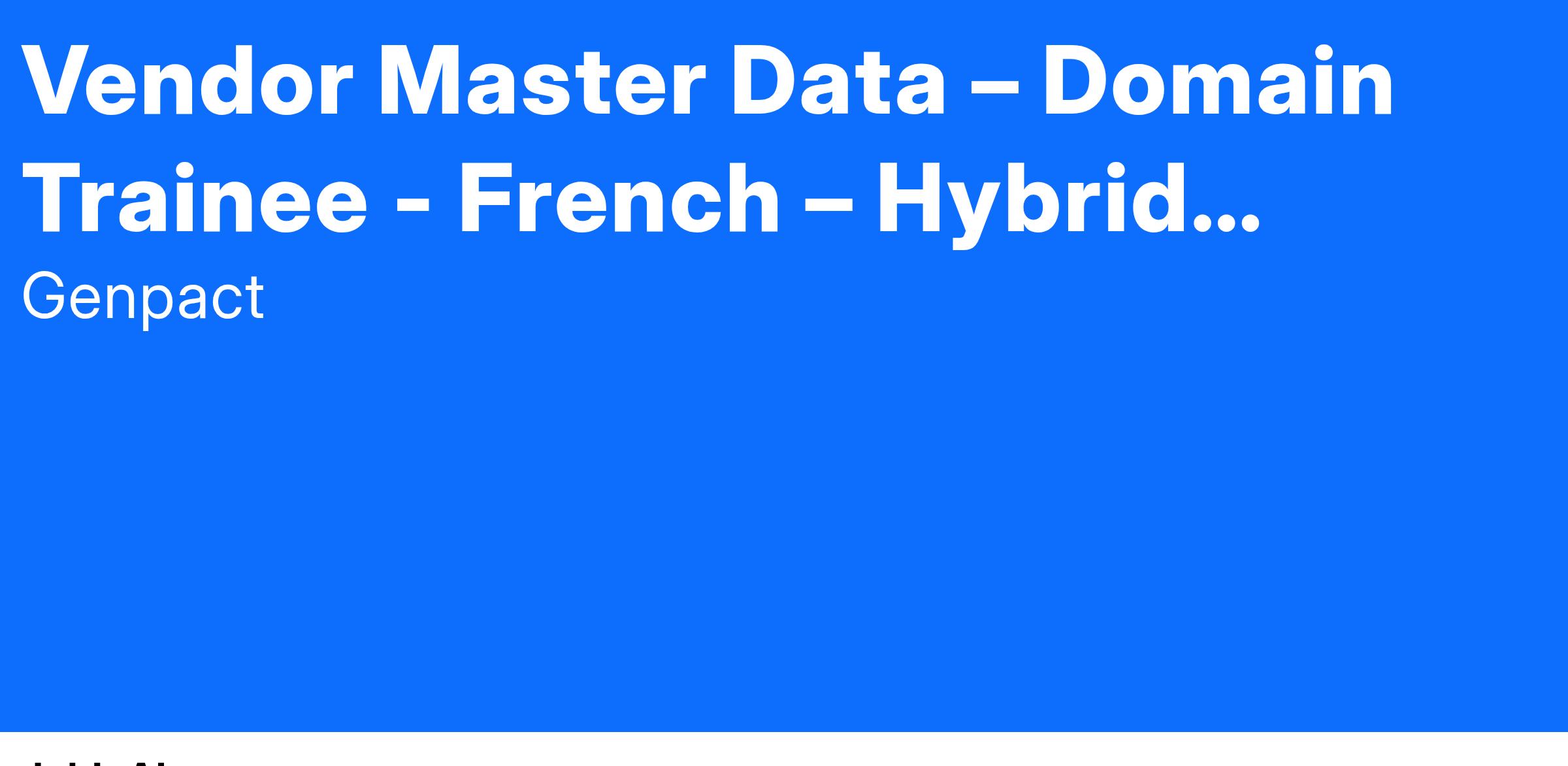Inviting applications for the role of Procurement & Vendor Master Data – Domain Trainee - French – Hybrid Bucharest